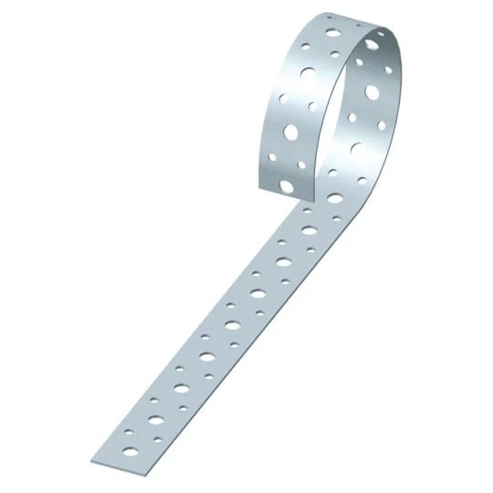 Anti-flambement des charpentes adapté à la fermette. Fixation de gaines, reprise de charges au soulèvement. Largeur : 30 mm. Longueur du rouleau : 50 m. Epaisseur : 1,5 mm. Trous diamètre : 5 et 8 mm.