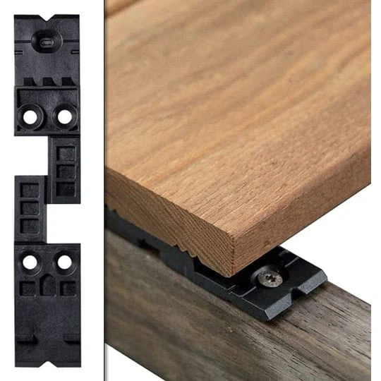 La fixation est vissée sous la lame puis, une fois retournée, se visse dans la lambourde.