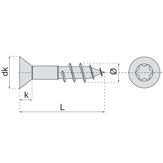 Vis – Ø 5 Mm – Pour Bois Et Aggloméré Tête Fraisée Six Lobes Inox A2